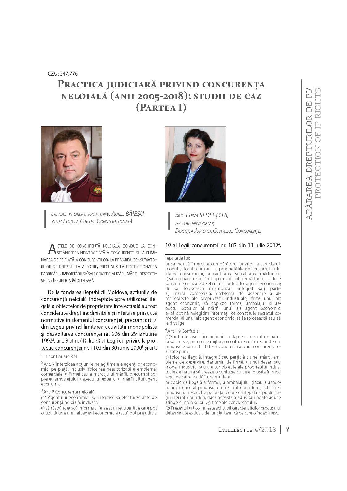 „Practica judiciară privind concurența neloială (anii 2005-2018): studii de caz. Partea I.” , autori Elena SEDLEȚCHI, Aurel BĂIEȘU