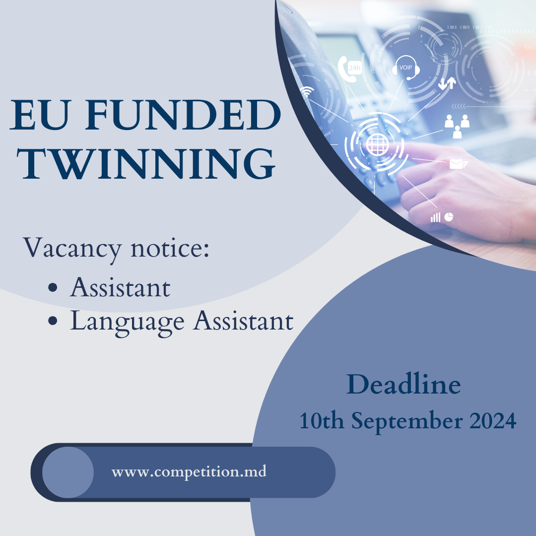 Proiectul TWINNING finanțat de UE recrutează Asistent și Asistent Lingvistic